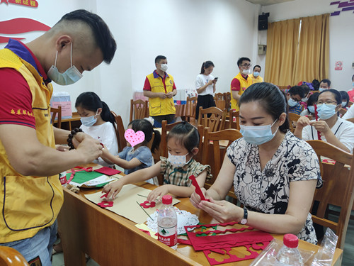 活动在亲子家庭代表表演的手势舞和独唱中拉开了序幕,陈艳芬和广东狮子会启晨服务队为孩子们赠送了学习大礼包,“爱心父母”一对一与“困境儿童”代表一起制作“手工花”,通过情感交流与互动,拉近与孩子间的距离,现场气氛其乐融融,非常温馨。